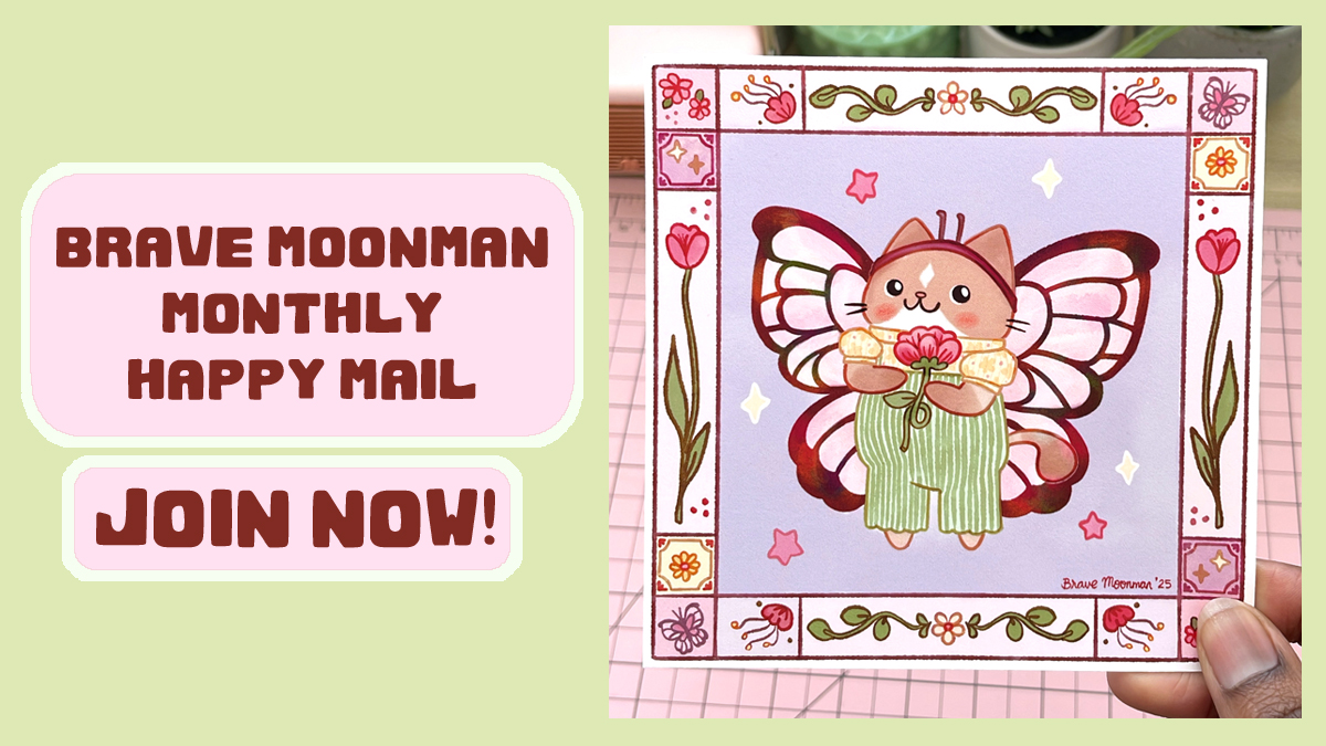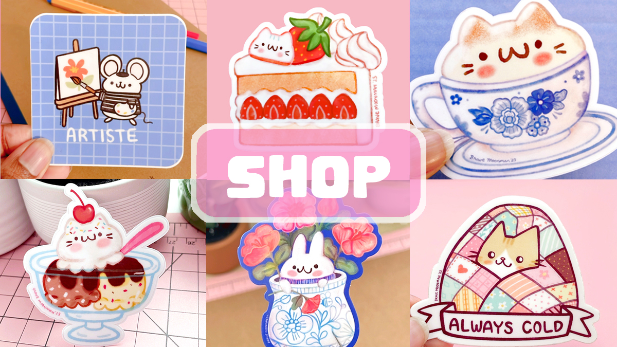 Welcome to bravemoonman.com, the place to find cute stickers, art prints, keychains and pins featuring original characters and artwork by Lindsey Porter!