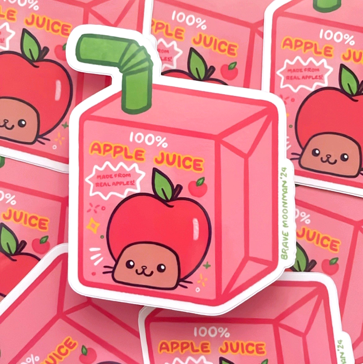 This kawaii vinyl sticker features Apple Cat on an apple juice box!