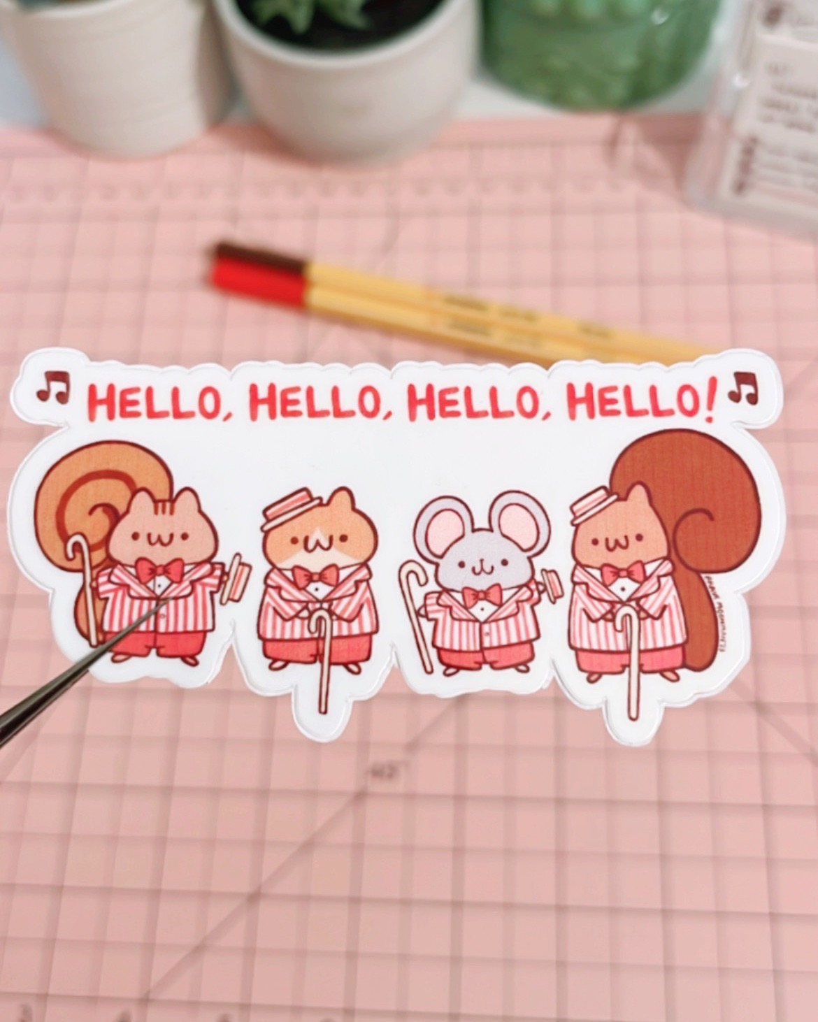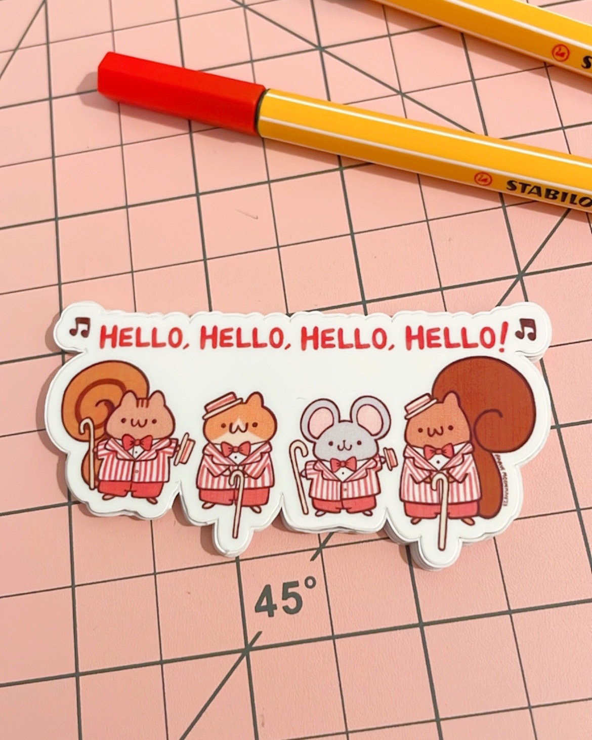 Cute vinyl sticker featuring a harmonizing barbershop quartet of adorable critters!