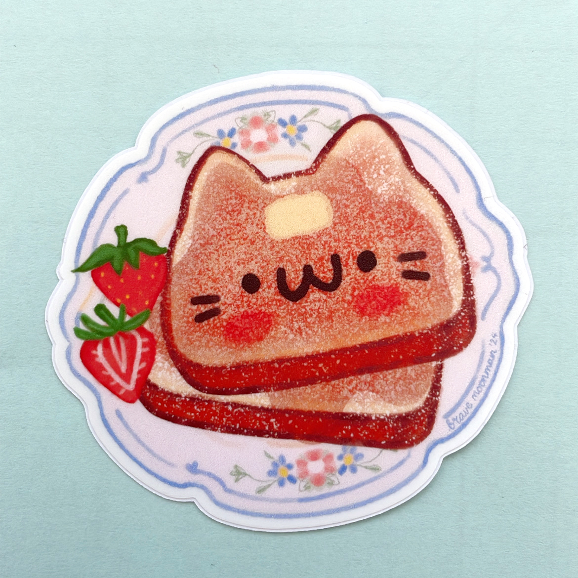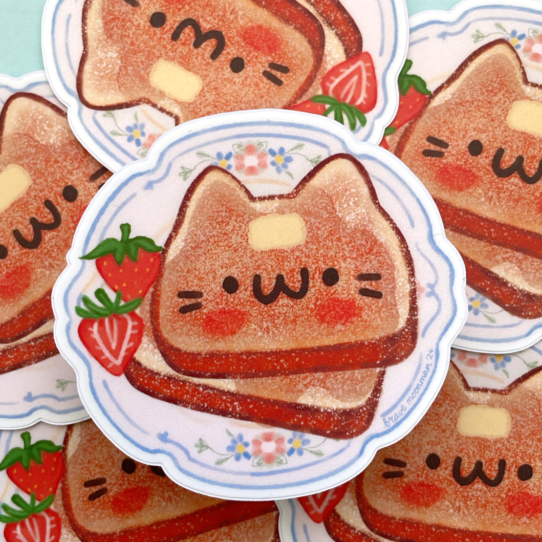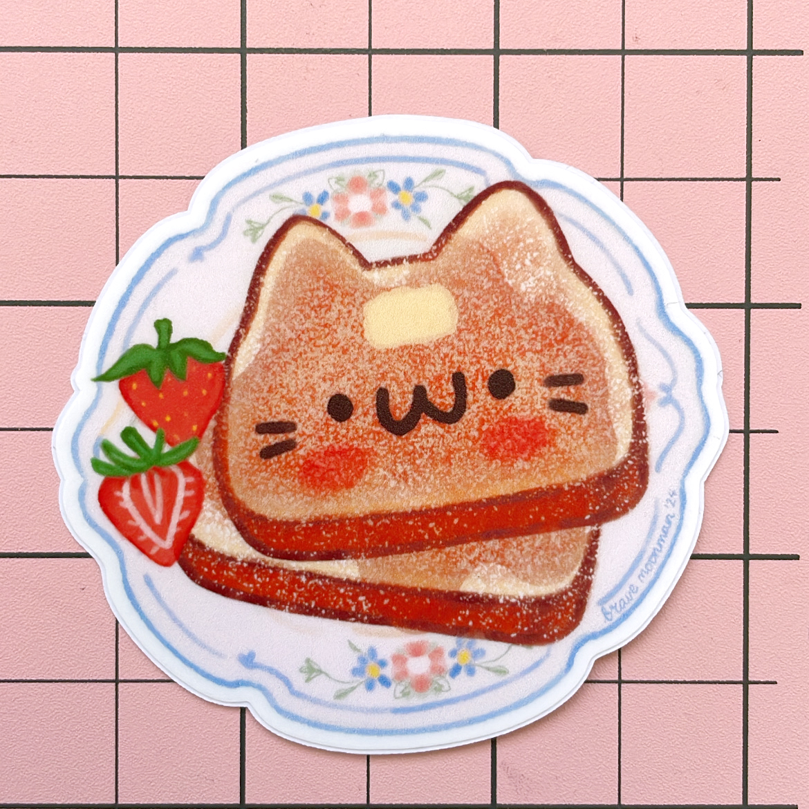 This adorable sticker features two slices of cat shaped french toast on a fancy plate!