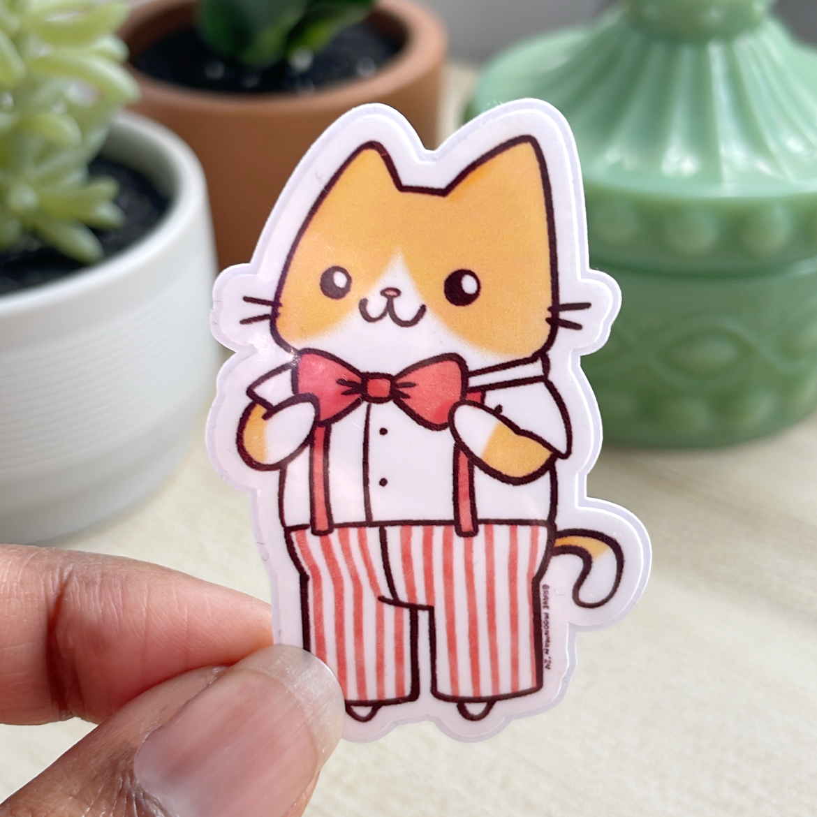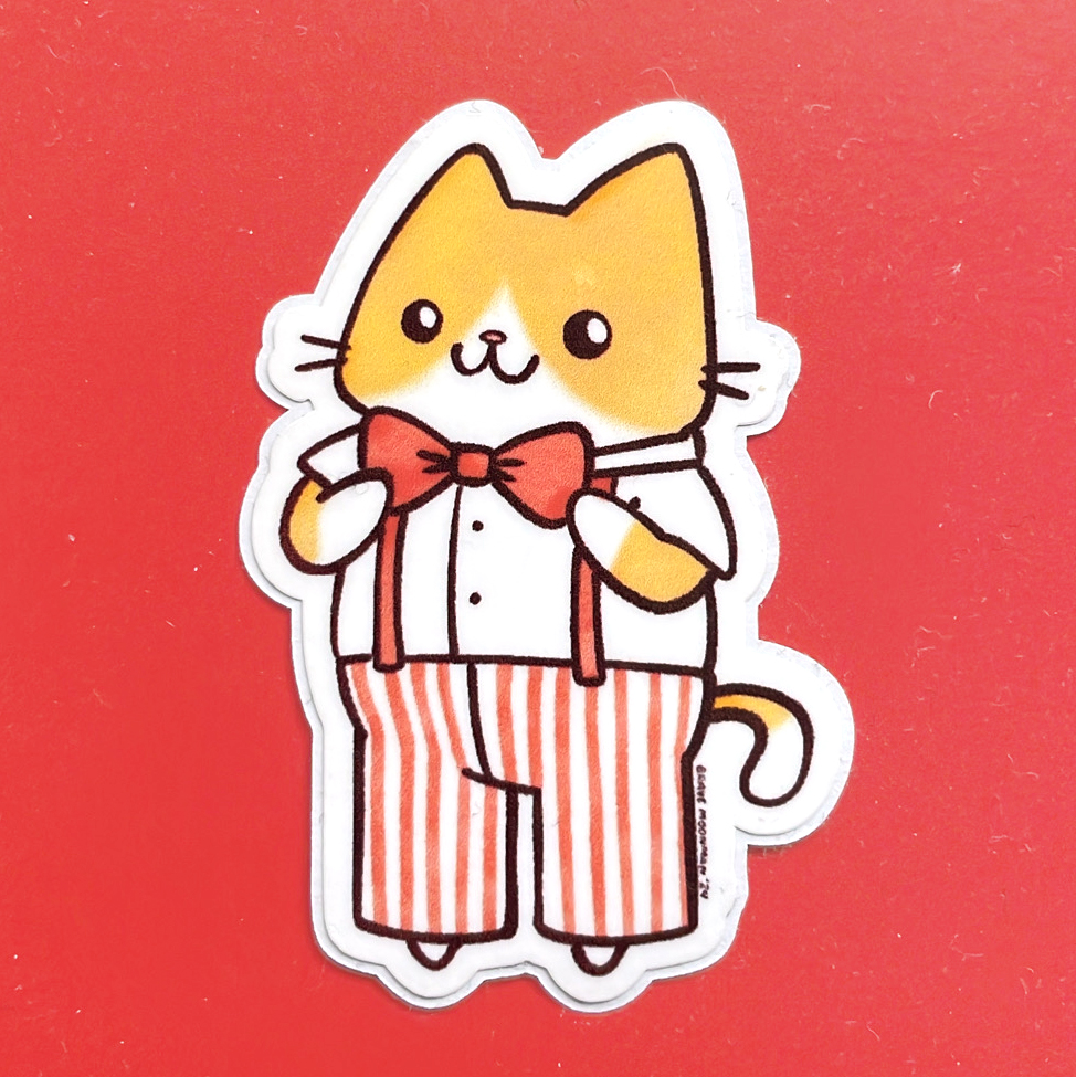 This adorable sticker features a dapper cat straightening his red bowtie!