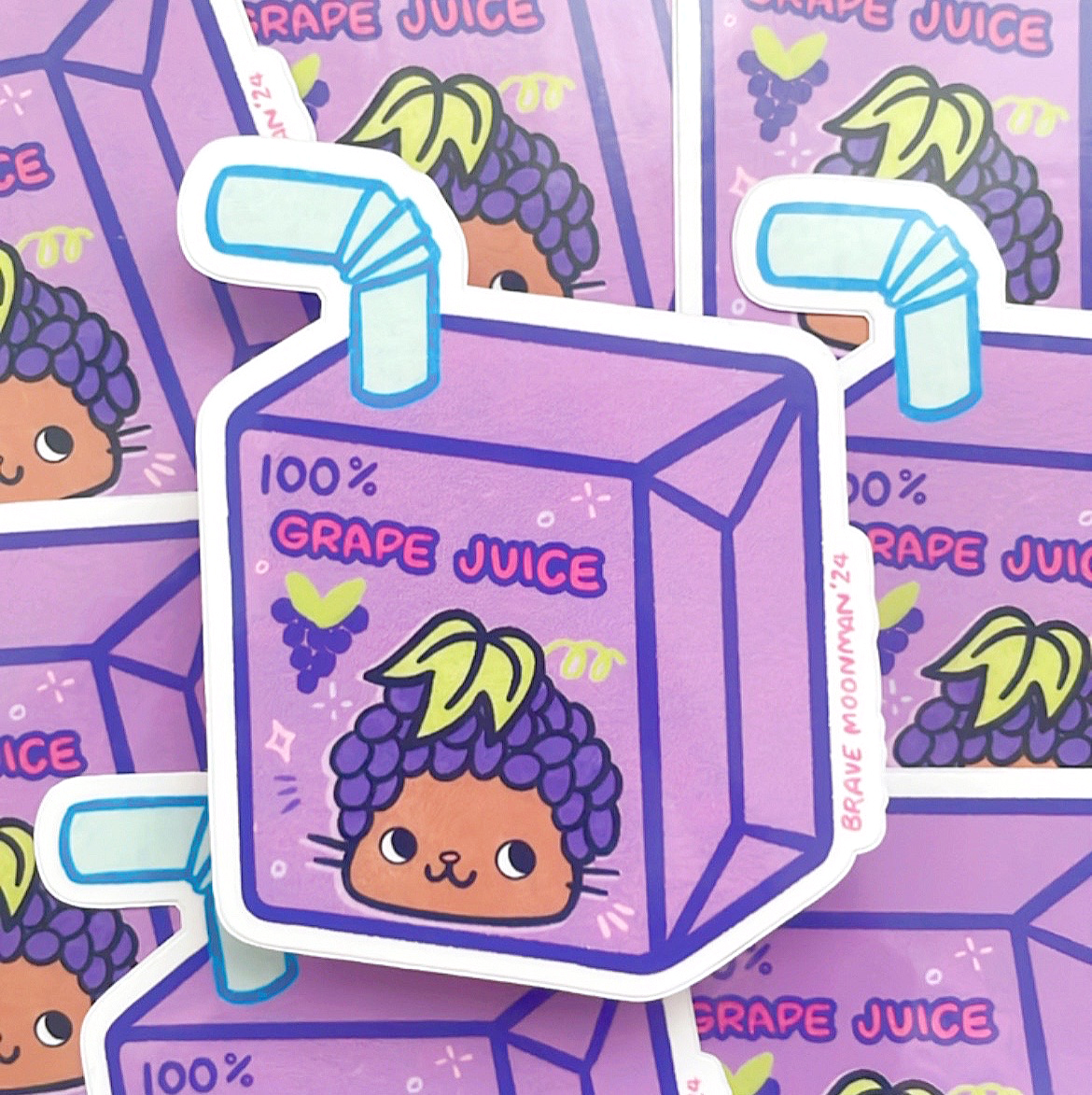 This kawaii vinyl sticker features Grape Cat on an grape juice box!