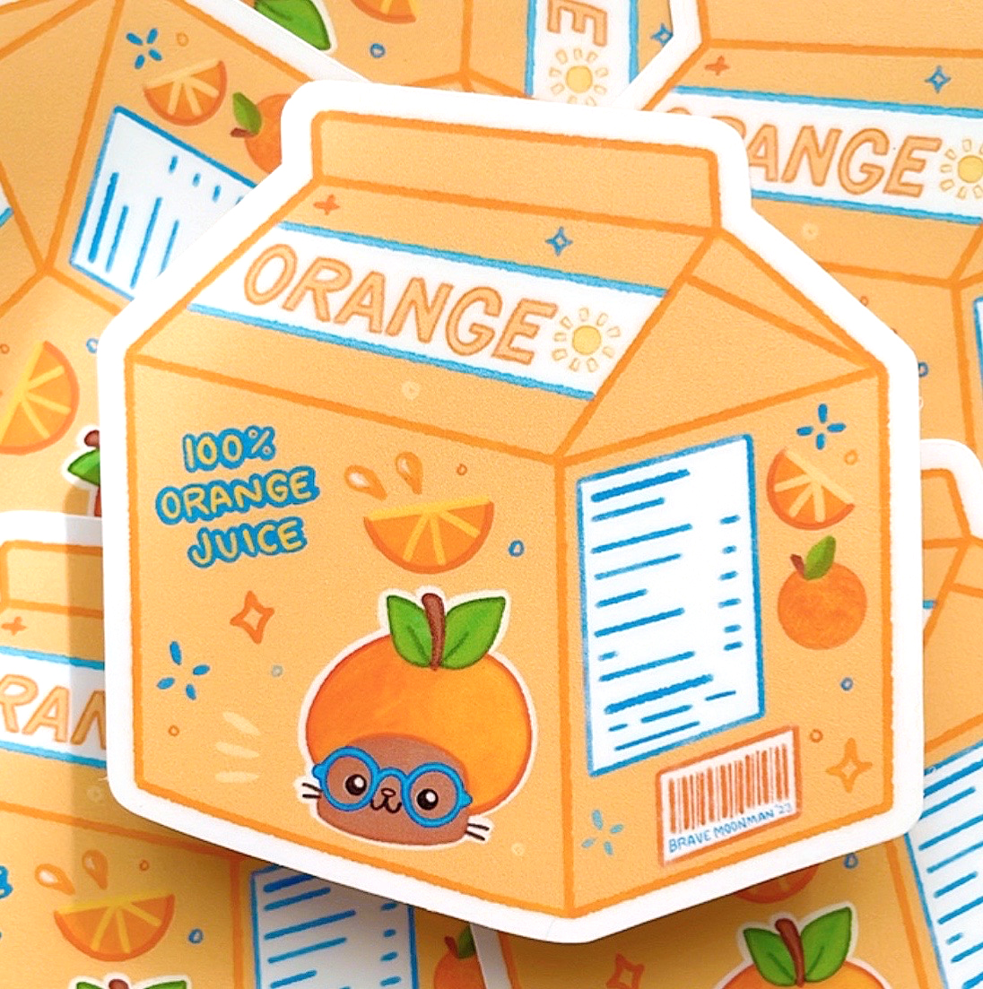 This cute vinyl sticker features Orange Cat on a carton of fresh squeezed orange juice!