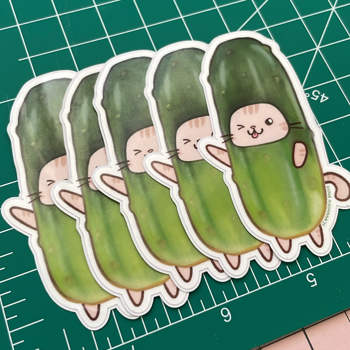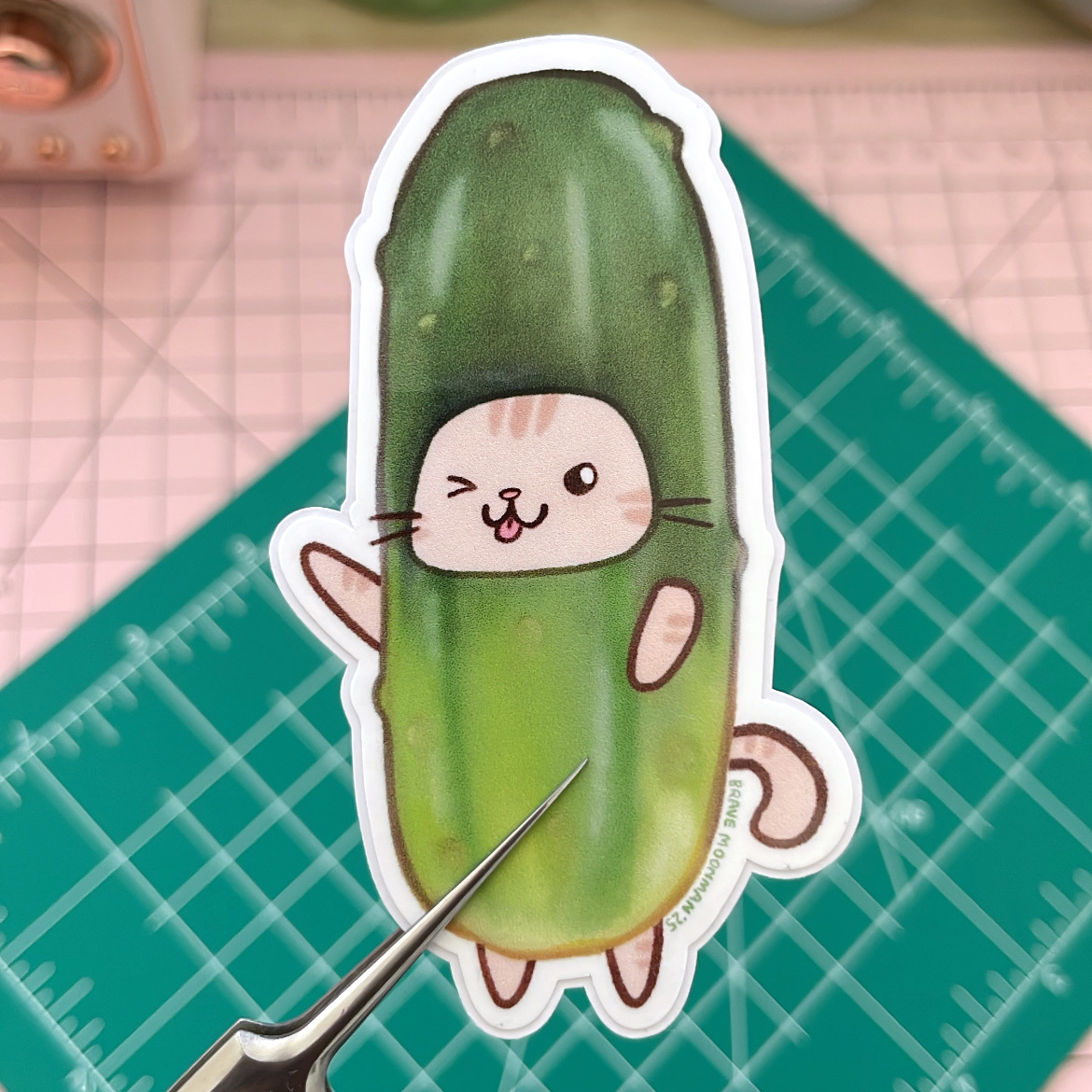 This cute vinyl sticker features Pickle Cat, the cat in a pickle costume!