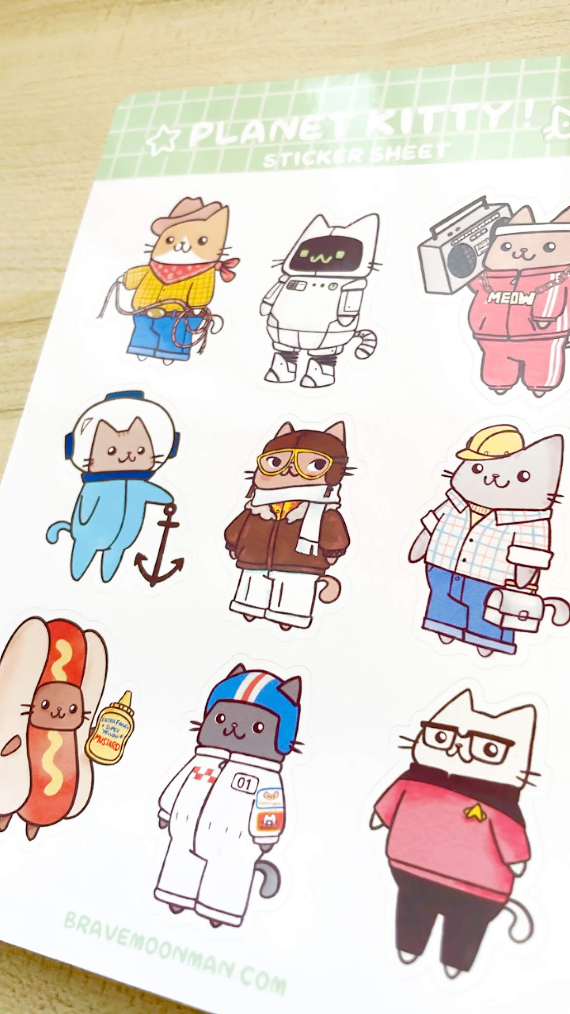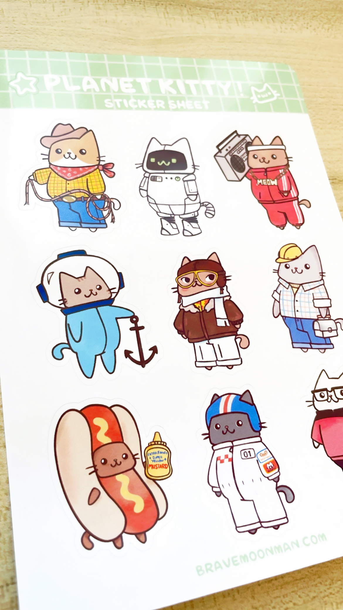 Enter the world of Planet Kitty with this cute sticker sheet! Features nine adorable cats dressed in different outfits. With a variety of costumes and cat personalities, there’s a sticker for every mood!