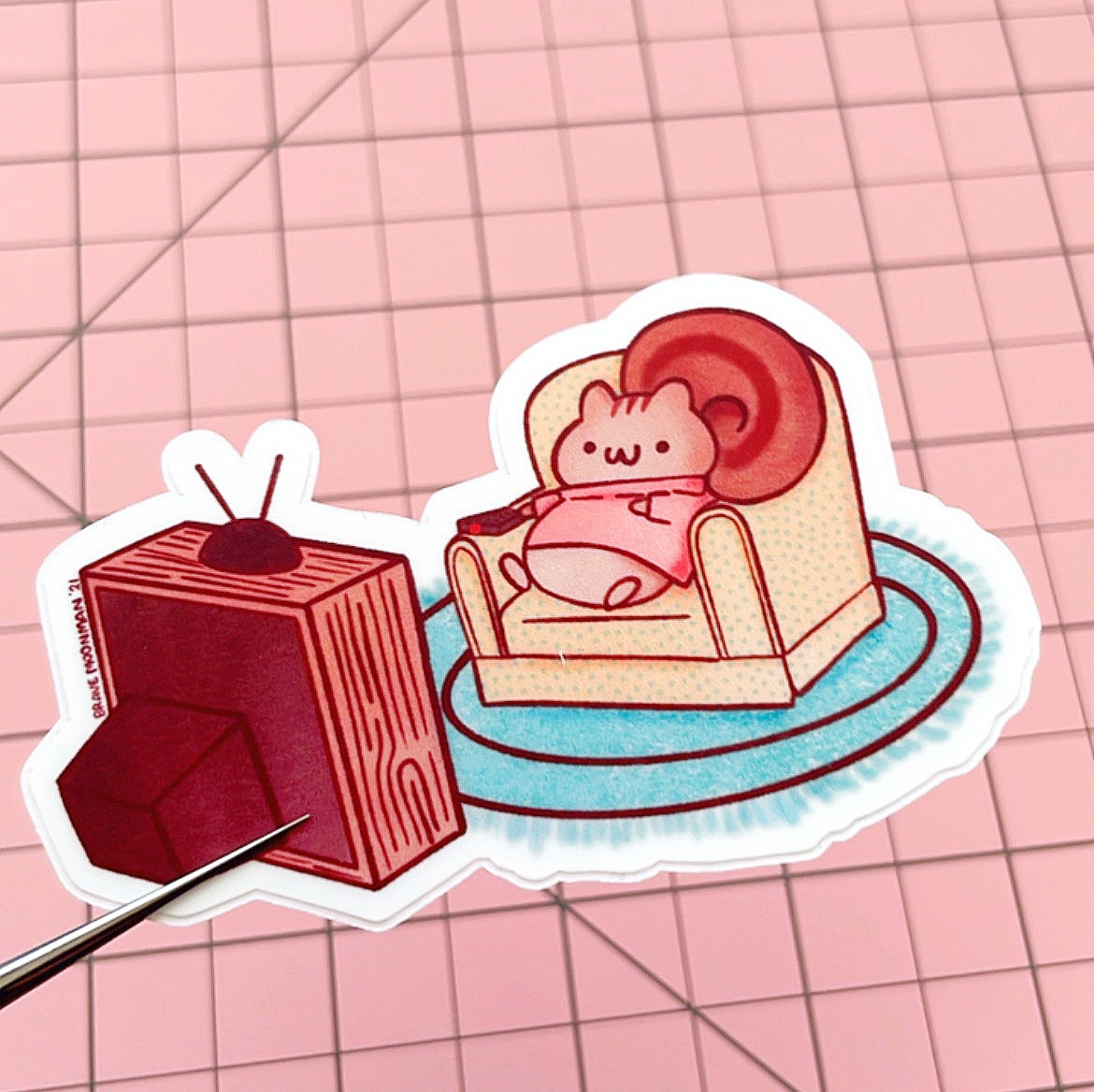 This cute sticker set features a cute chipmunk relaxing with a good book, enjoying TV time, and savoring a warm cup of acorn coffee. Each sticker is a window into the chipmunk’s little home, adding a touch of woodland coziness to your belongings.