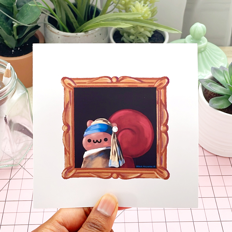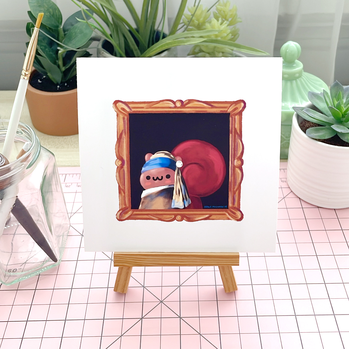 This art print features the “Squirrel With a Pearl Earring” in a fancy picture frame.