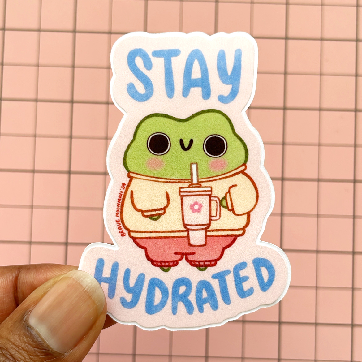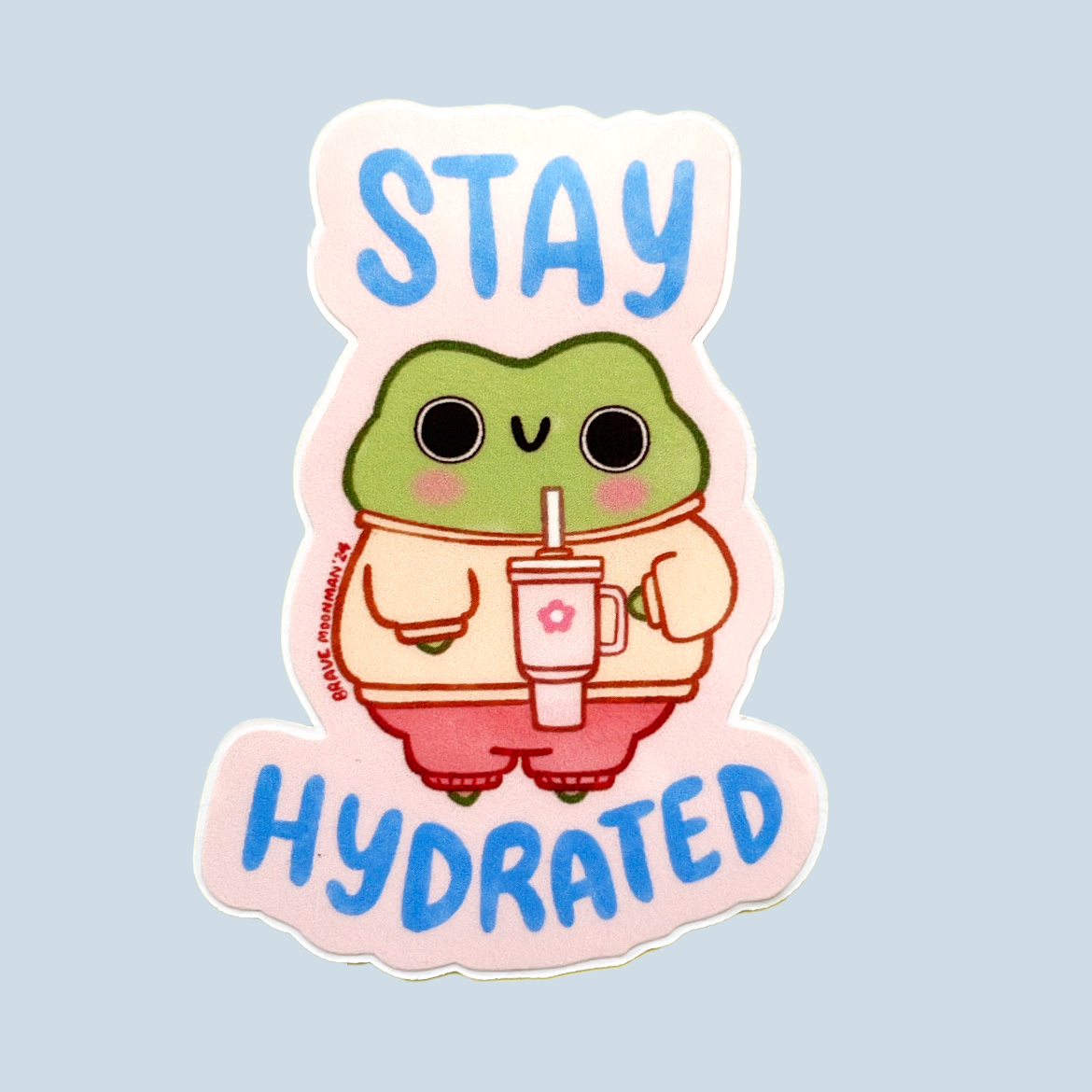 Cute vinyl sticker featuring a cute little frog that will remind you to stay hydrated!